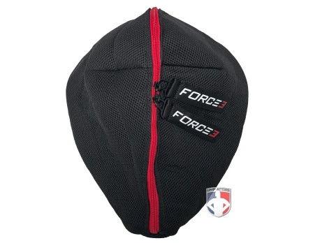 The bag is shaped specifically for Force3 masks, and fits other brand traditional umpire masks well. It is made of breathable mesh material and zips closed. Carry with a thick double-stitched handle on the opposite side.
