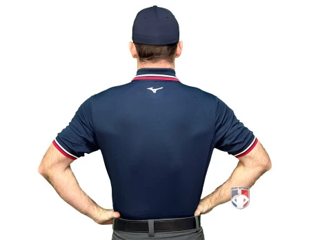 Mizuno introduces for the first time their umpire shirts to the U.S. market! This Navy Mizuno Performance Short Sleeve Umpire Shirt is constructed with lightweight, breathable, sweat-wicking poly spandex fabric in the traditional Navy and Red color and trim style.